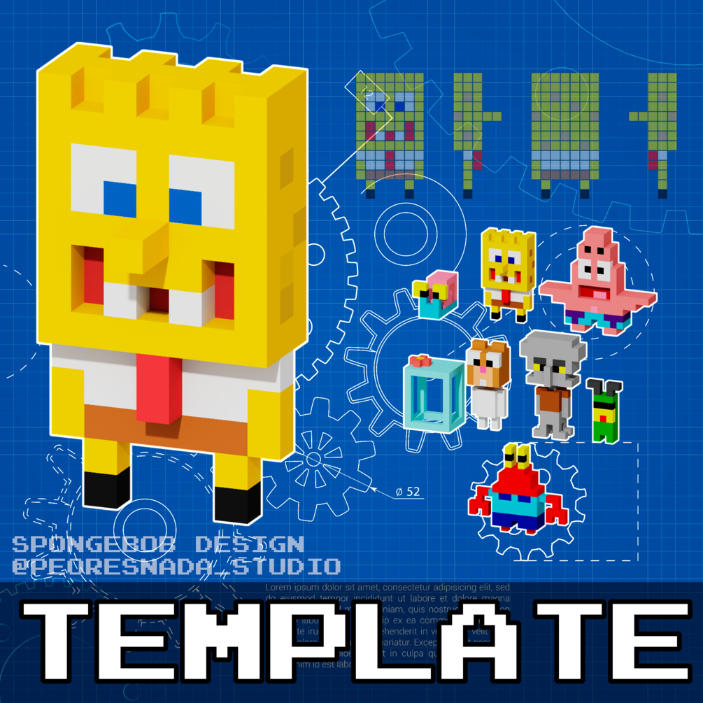 Puedes usar las plantillas 2D/3D para recrear los modelos en cualquier programa voxel/3D, o construirlos con legos, Pix Brix o cualquier bloques de construcción, o crearlos usando hama beads (hama/perler/artkal/etc) pero no puedes revender ni redistribuir esta plantilla.
